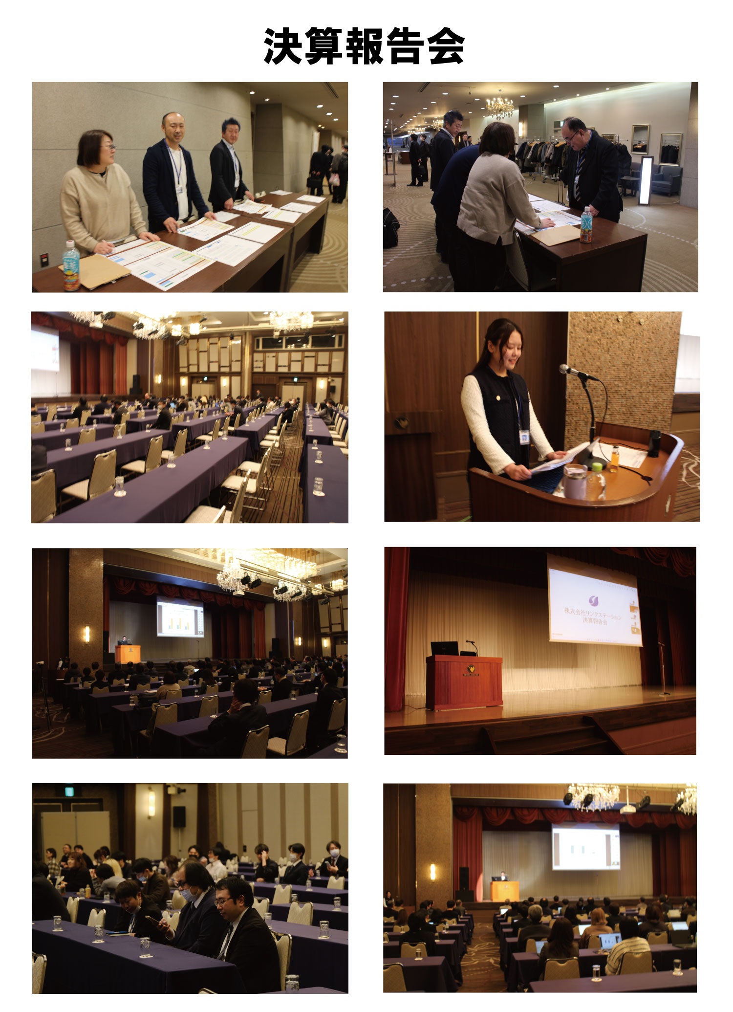 決算報告会は大嶋会長が登壇し一年の業績の振り返りをおこない、代表取締役の田中社長が今後の展望を話しました。